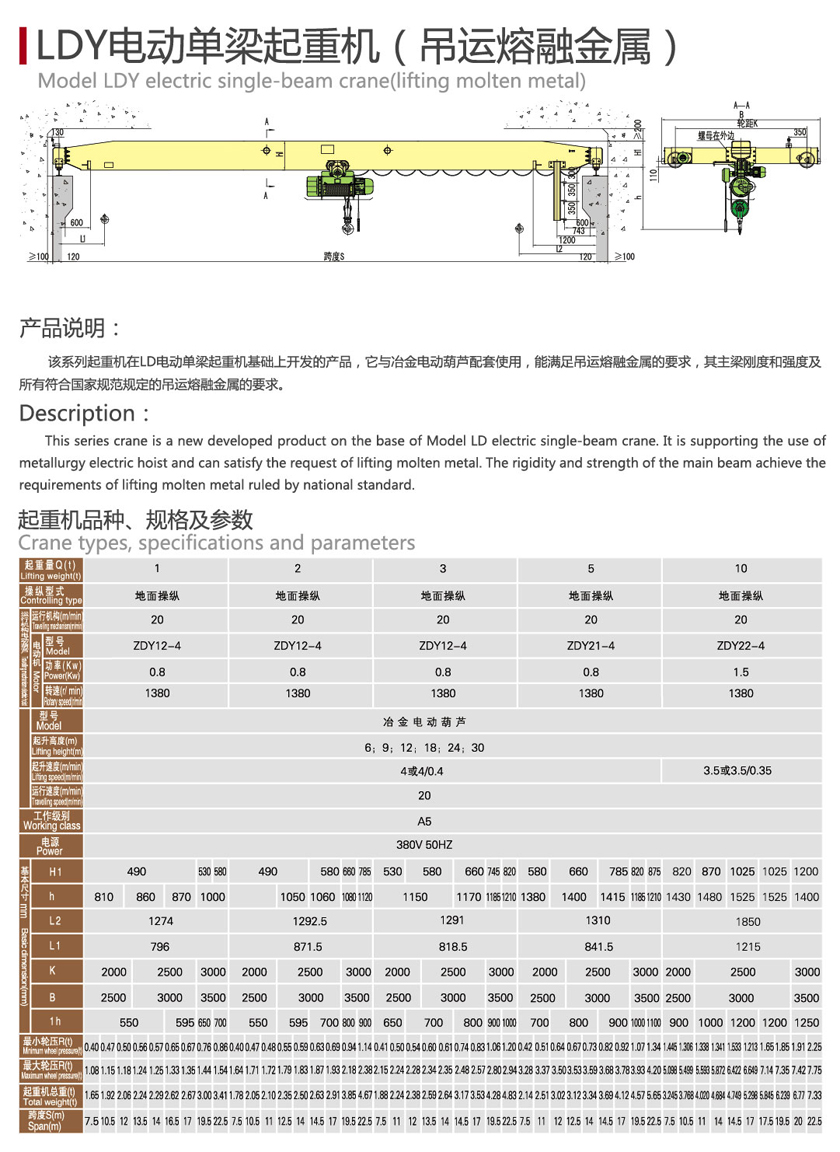 LDY冶金單梁起重機(jī)(吊運(yùn)溶融金屬)